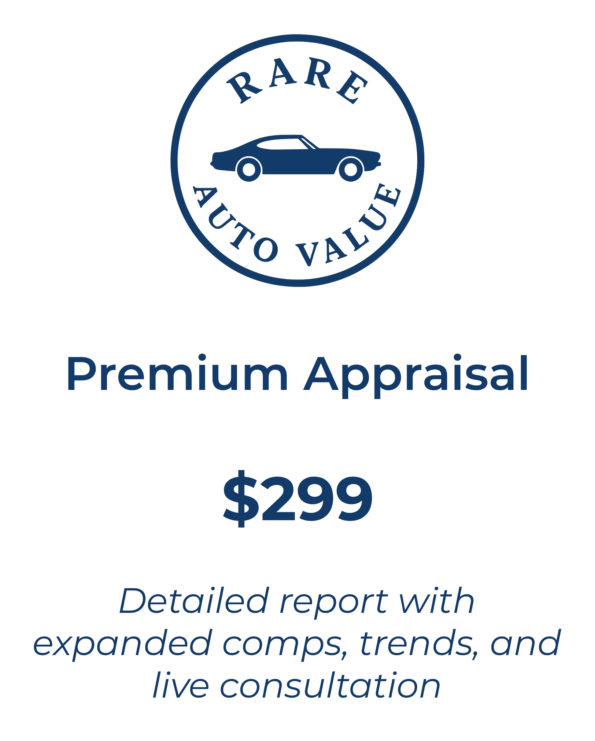 Our most comprehensive service, designed for collectors, high-value vehicles, or anyone who wants the full picture. The Premium Appraisal goes beyond comps to provide detailed analysis, market forecasting, and personal consultation.